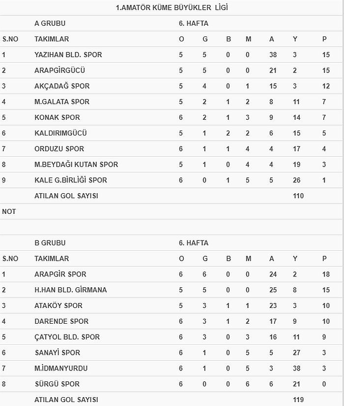 A ve B gruplarında Yeşiltepe, Arapgir, ve Darende Statlarında oynanan maçlarda alınan sonuçlar şöyle: