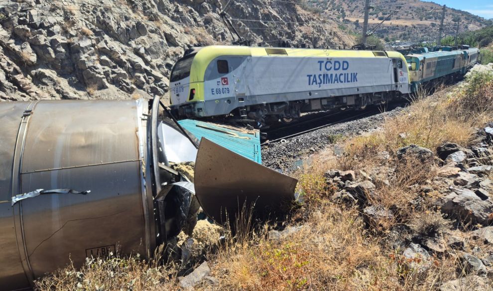 Malatya’da demir cevheri taşıyan yük treni ile yakıt taşıyan yük treni kafa kafaya çarpıştı. Kazada 1 makinist yaralandı.