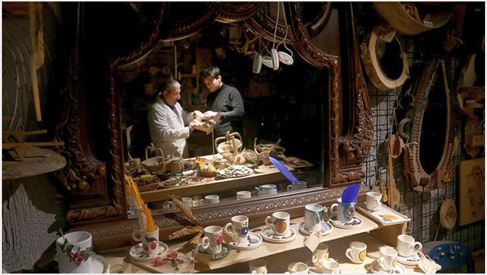 Sanat Sokağı'ndaki iş yerinde ağaç kütüklerini işleyerek onlara şekli veren ahşap ustası Mikail Fırat, atölyesine gelen ziyaretçilere sanatını anlatıyor.