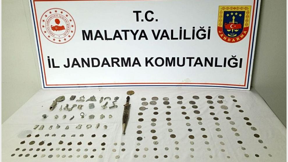 Battalgazi’de yapılan operasyonda 144 sikke, 1 kama ve 28 tarihi obje ele geçirildi. Bir şüpheli hakkında adli işlem başlatıldı.