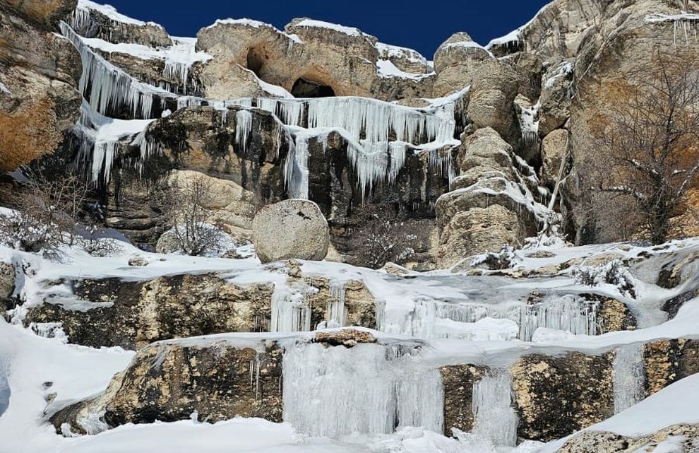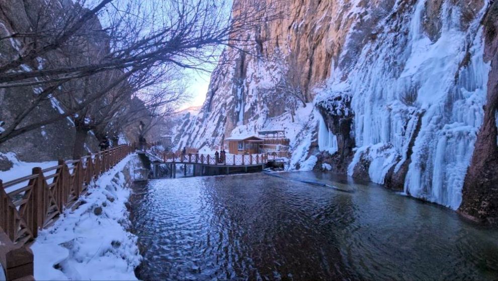 Donan şelaleyi görmek isteyen çok sayıda vatandaş bölgeyi ziyaret ederek kısmen buz tutan şelalenin ortaya çıkardığı görsel şöleni hayranlıkla izledi.