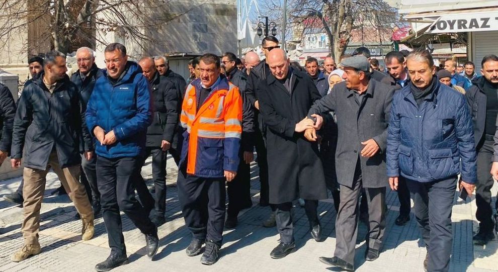 ARŞİV FOTOĞRAFLAR: Depremden sonra Malatya'ya gelen bakanlardan dönemin İçişleri Bakanı Süleyman Soylu'ya çarşı gezdirilirken, Keskin de eşlik ediyor.