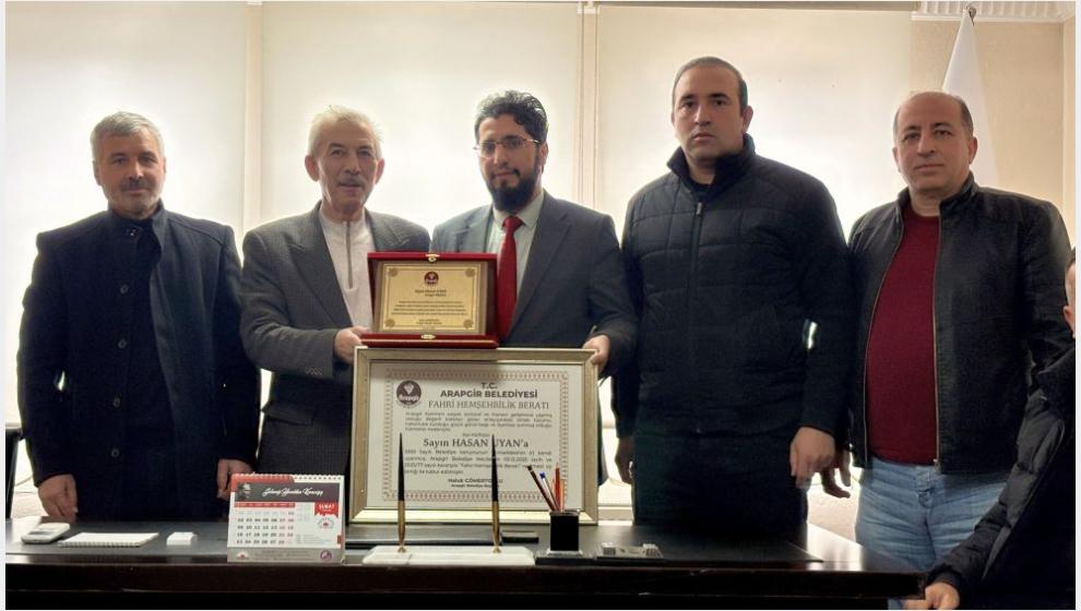 Arapgir Belediye Meclisi’nin kararı doğrultusunda alınan fahri hemşehrilik kararı kapsamında berat ve teşekkür plaketi, 2026 yılı Ocak ayı Belediye Meclis Toplantısı’nda takdim edildi.