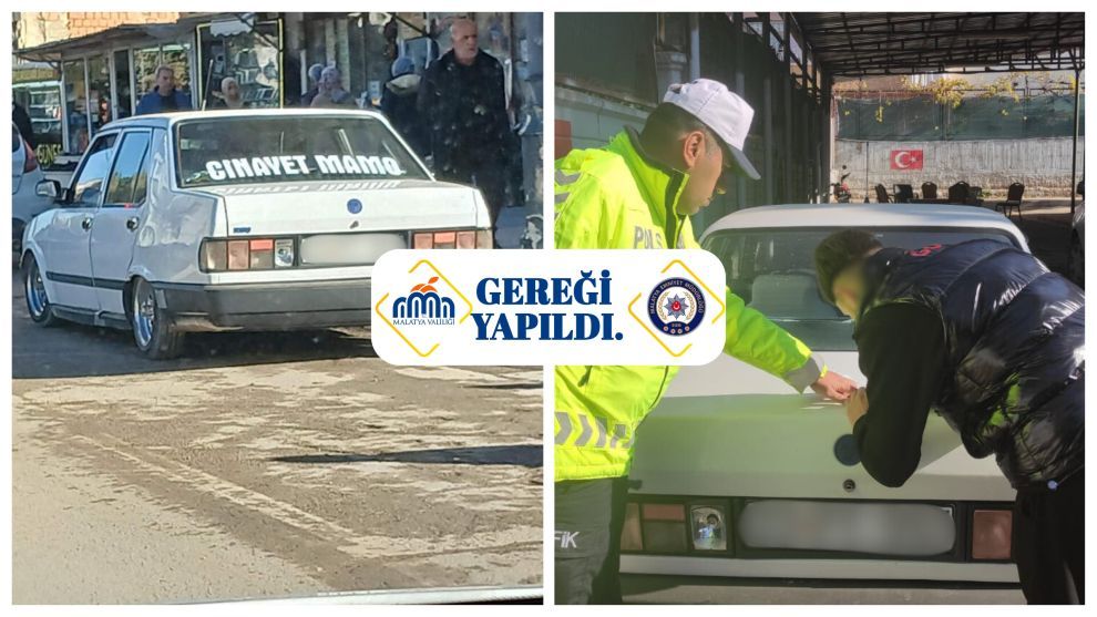 malatyahaber.com muhabirinin 2 Aralık Salı günü İnönü Caddesi Dörtyol mevkiinde, arka camında iri harflerle 'CİNAYET MAMO' yazısıyla görüntülediği otomobilin, haber üzerine Emniyet Asayiş ve Trafik Şubesi ekipleri tarafından bulunduğu, yazının sildirilerek sürücüsüne idari para cezasının uygulandığı açıklandı.