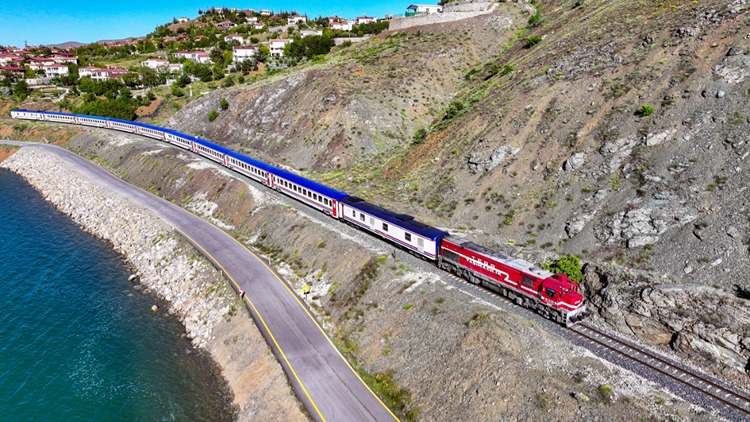 Ankara'dan yola çıktıktan sonra 1051 kilometrelik bir yay çizerek Kayseri, Malatya, Elazığ'ı aşıp Diyarbakır'a ulaşan tren, Diyarbakır'dan Elazığ'a uzanan güzergahında tarım alanları, yeşil ovalar, tüneller ve Hazar Gölü'ndeki seyrinde dronla görüntülendi.