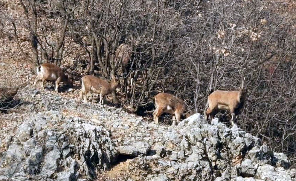 Cep telefonu kamerası ile görüntülenen, yüksek rakımlı bölgelerde yaşadıkları bilinen yaban keçileri, son zamanlarda insanlara görünmekten ise çekinmiyor. Metrelerce yüksekliğe aldırmayan dağ keçileri, adeta yer çekimine meydan okuyor.