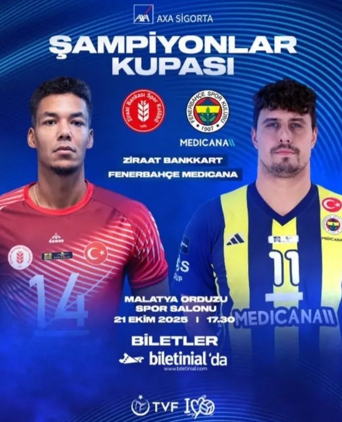 Türkiye Voleybol Federasyonu (TVF) tarafından organize edilen Erkekler AXA Sigorta Şampiyonlar Kupasının finali Malatya’da oynanacak.
