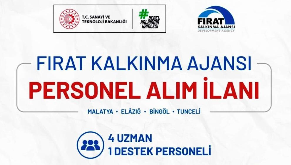 Fırat Kalkınma Ajansı, TRB1 Bölgesi'nde görevlendirilmek üzere 4 uzman personel ve 1 destek personeli (programcı) alımı gerçekleştirecek.