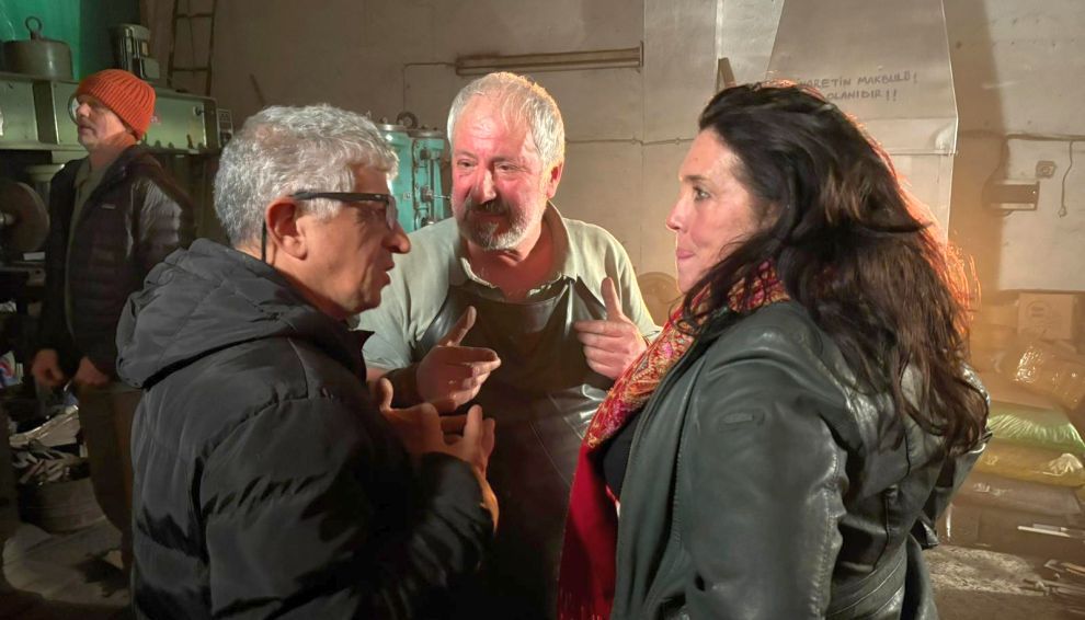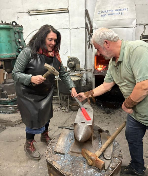 Bettany Hughes atölyede Yusuf Usta ile karşılıklı demir dövdü.