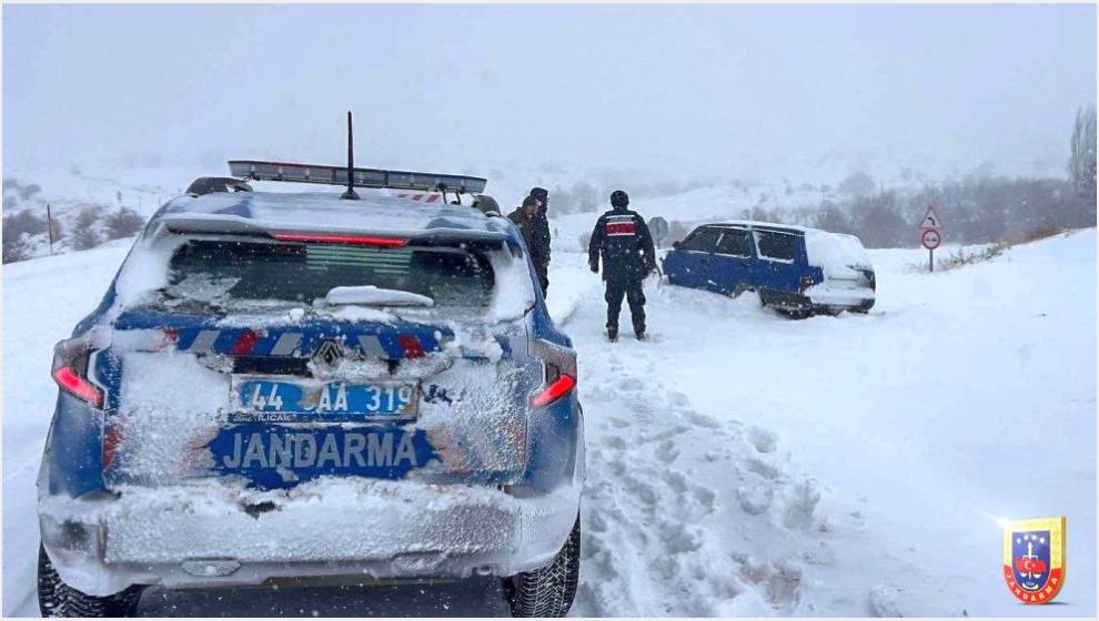 “31 Aralık 2025 günü Malatya genelinde etkili olan yoğun kar yağışı nedeniyle yolda mahsur kalan; 20 araç, 73 vatandaşımız, Malatya İl Jandarma Komutanlığımızın çalışmalarıyla kurtarılarak güvenli alanlara sevk edilmiştir.”