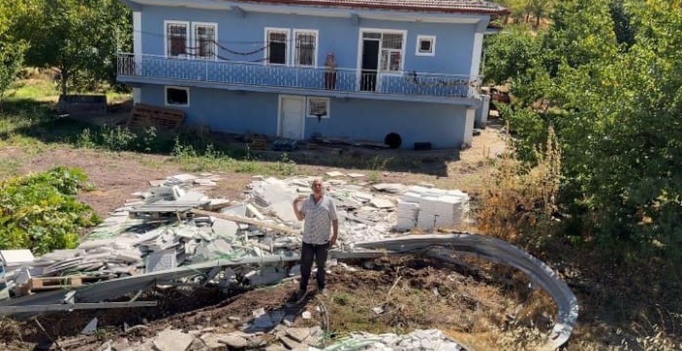 Malatya'da, sürücüsünün kontrolünü kaybettiği karo mozaik yüklü tır, bariyerleri aşarak bir evin bahçesine uçtu.