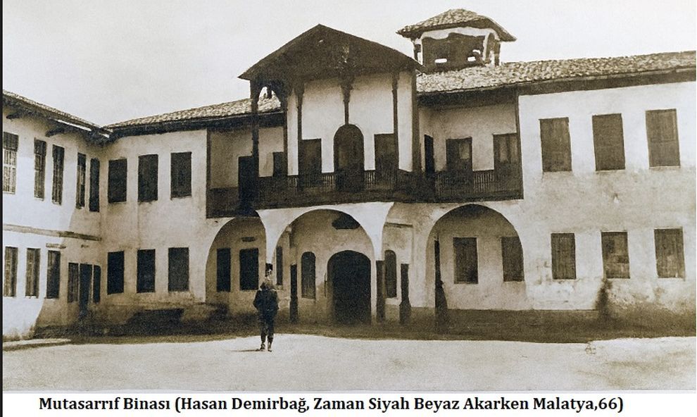 KAPAK FOTOĞRAFI: Eski belediye binasının yanında Emlakbank iken Ziraat Bankası şubesine dönüştürülen binanın bulunduğu yerdeki Malatya Mutasarrıflık Sarayı.. Saray Mahallesi, adını bu binadan dolayı almaktaydı