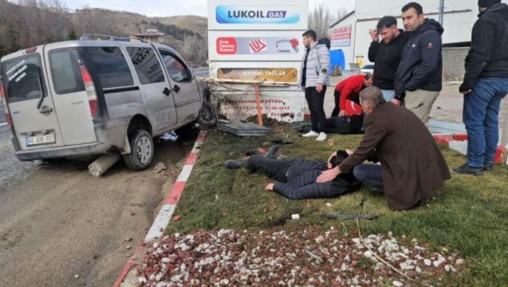 Malatya'da kontrolden çıkan hafif ticari araç akaryakıt istasyonuna daldı. Kazada 2 kişi yaralandı.