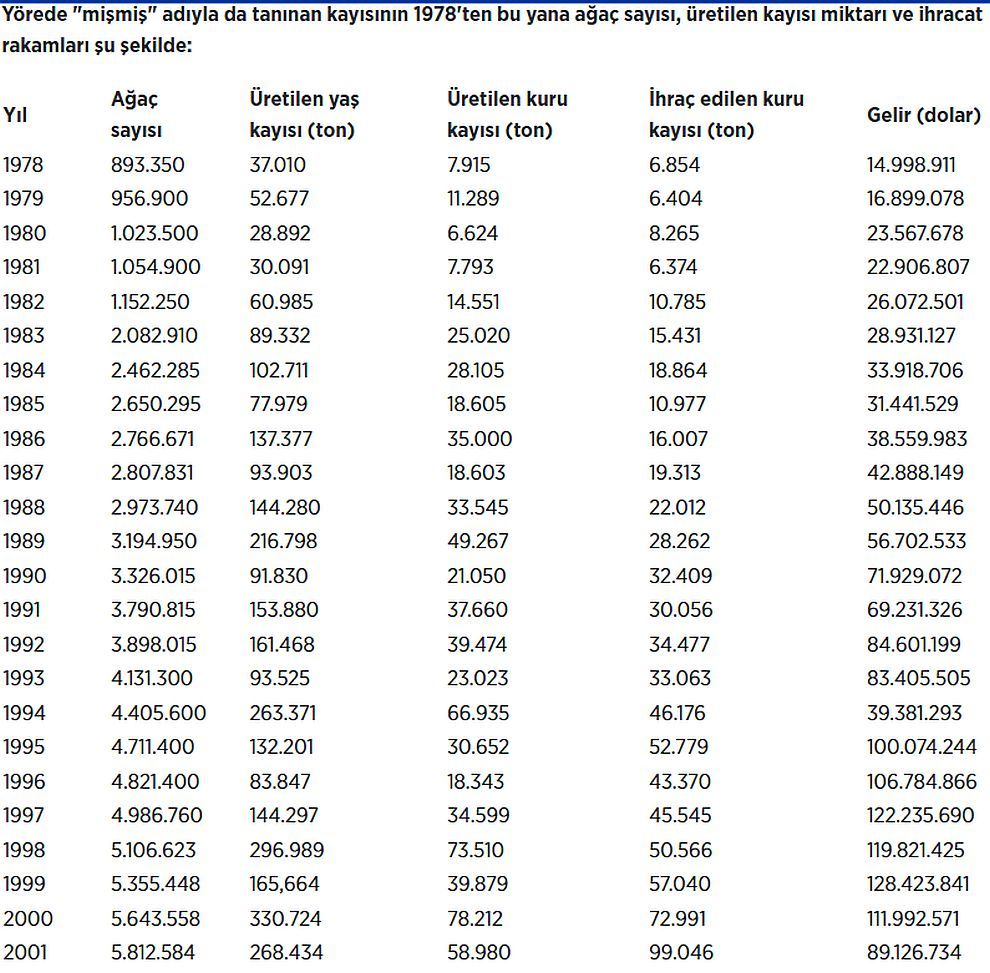 Kentte 1978'ten bu yana 3 milyon ton civarında "mişmiş" ihraç edilirken, yaklaşık 8 milyar dolar gelir elde edildi.