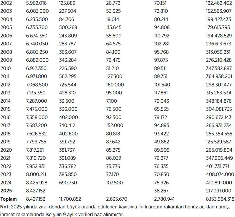 "Malatya'da yaş ve kuru kayısı üretimi 1978'de kayıt altına alınmaya başlıyor. Bu süre zarfında aslında burada hikaye yaklaşık 1 milyon kök ağaç ve ilk 1978 yılında 40 bin tona yakın bir yaş kayısı üretimi ve aynı yılda 7 bin tona yakın da bir kuru kayısı ihracatı var. Özellikle Ege Bölgesi'ne, liman kentlerine buradan bez torbalarla sevk ediliyor. Malatya'da gün geçtikçe özellikle hem ağaç dikiminde sayı gittikçe artıyor bir taraftan üretim kapasitesi artıyor, bir taraftan da ihracat gelirleri artmaya başlıyor. Tabii bu hikaye artık milyon kök ağaçlar 1-2-3-5 devam ederken, ihracatta 10, 20, 30 ve 50 bin tonlara doğru gittiği bir hikaye başlıyor."