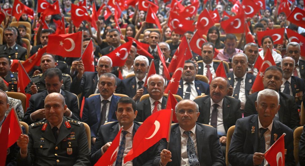 Törenlere; Vali Vekili Sedat Özdemir,2. Ordu Kurmay Başkanı ve Garnizon Komutanı Tümgeneral Aydın Kılıç, Büyükşehir Belediye Başkanı Sami Er, 7. Ana Jet Üs Komutanı Tuğgeneral Serdar Akkoyun, Vali Yardımcıları, kaymakamlar, İl Emniyet Müdürü Kayhan Ay, İl Jandarma Komutanı Albay Tolunay Başer, Şehit ve Gazi Dernek Başkanları, şehit aileleri, gaziler ve öğrenciler katıldı.