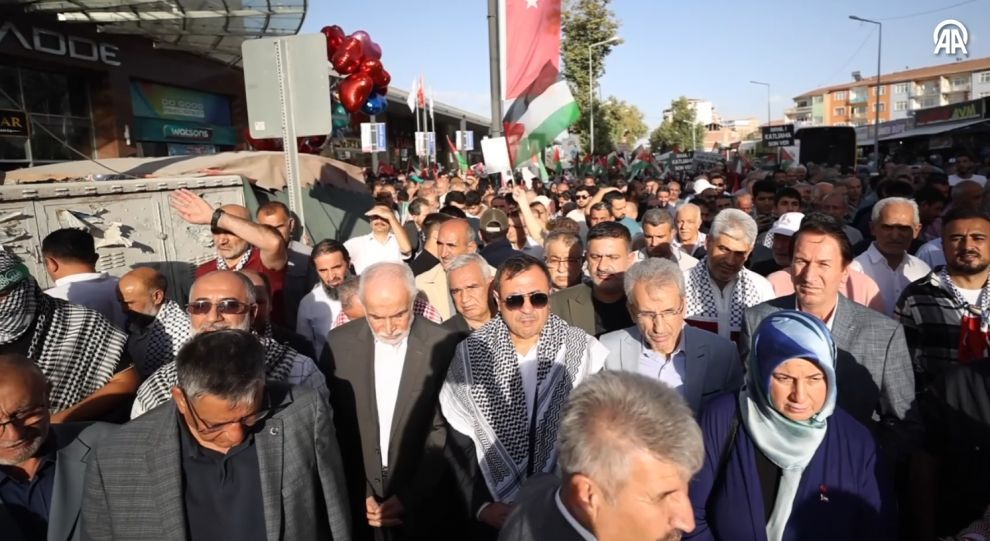 Burada toplanan katılımcılar, sık sık tekbir getirerek, İsrail aleyhine slogan attı.