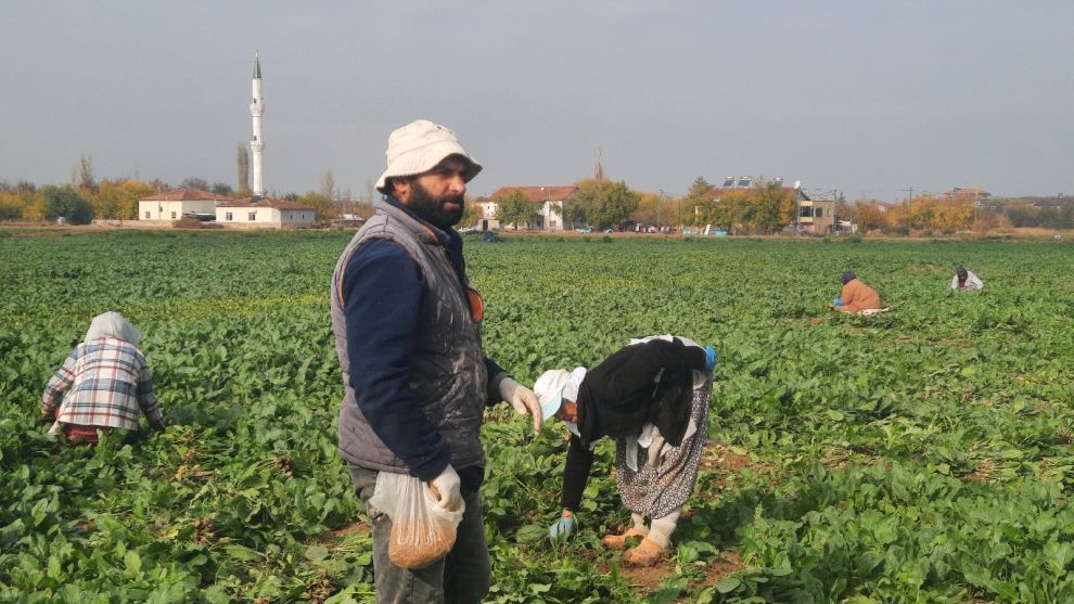 Tarlanın içinde çalışan kadın işçilerin arasından yükselen uğultu, hem emeğin hem de geçim derdinin sesiydi. Çolakoğlu’ndan çiftçi Ramazan Ulu, eldivenli elleriyle ıspanak keserken bir yandan da çalışanları yönlendiriyordu. Yüzünde soğuktan kızarmış ama yorulmaya alışkın bir ifade vardı.