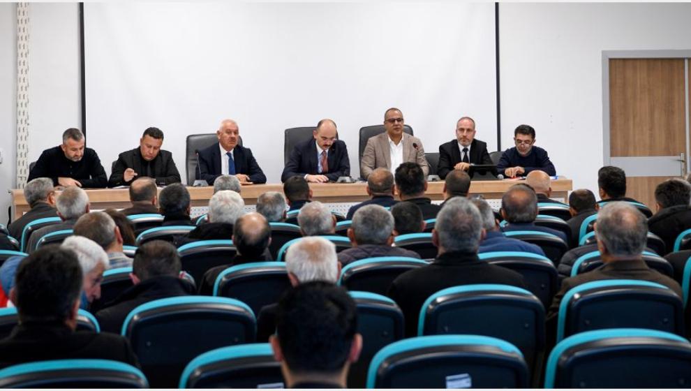 Çalışmaların hızla devam ettiğini belirten MASKİ Genel Müdürü Sinan Çeçen: “Değerli muhtarlarım, öncelikle ev sahipliğiniz için teşekkür ederim. Kıymetli vaktinizi ayırarak bu toplantıya katıldığınız için ayrıca minnettarız. Büyükşehir Belediye Başkanımız Sayın Sami Er’in de selamlarını sizlere iletmek isterim. 2025 yılına ilişkin olarak, Sayın Başkanımızın yılbaşında gerçekleştirdiği lansman programında hangi ilçemize hangi yatırımların yapılacağını kamuoyuyla paylaşmıştık. Yılsonu itibarıyla bu yatırım programını değerlendirmek istedik. Aynı zamanda 2026 yılına yönelik yeni bir yatırım programı hazırlığı içerisindeyiz ve bunu da önümüzdeki süreçte ilan edeceğiz. Bölgemizde yaşanan sorunlar, mevcut eksiklikler ve ihtiyaçlar nelerdir; bunları birlikte değerlendirmeyi amaçlıyoruz. MASKİ Genel Müdürlüğü olarak, hizmet kalitemizi artırmak, çevreyi korumak ve altyapı hizmetlerinde sürdürülebilirliği sağlamak adına kamu kaynaklarını tasarruflu ve etkin bir şekilde kullanma gayreti içerisindeyiz. Şehrimiz olarak oldukça zor bir dönemden geçiyoruz. Üstyapının yaklaşık üçte birinin yıkıldığı bu süreçte, altyapı da ciddi tahribatlar aldı. Bununla birlikte, devletimiz tarafından Bakanlığımız ve Yapı İşleri Genel Müdürlüğü eliyle inşa edilen yeni konutlarımız bulunmaktadır. Bu konutların içme suyu temini ve kanalizasyon deşarjı ile ilgili çalışmalarda da MASKİ Genel Müdürlüğü olarak üzerimize düşen sorumluluğu yerine getirmeye çalışıyoruz.” dedi.