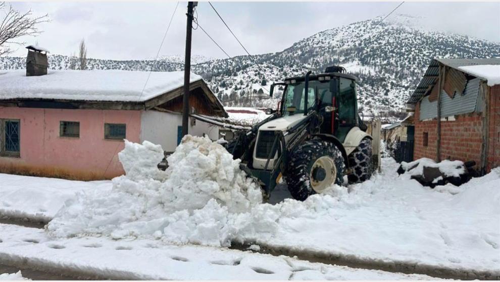 Doğanşehir Belediyesinden yapılan yazılı açıklamaya göre, kar kalınlığının yer yer 60 santimetreye ulaştığı ilçede, iş makineleriyle kar küreme çalışmaları sürdürülüyor.