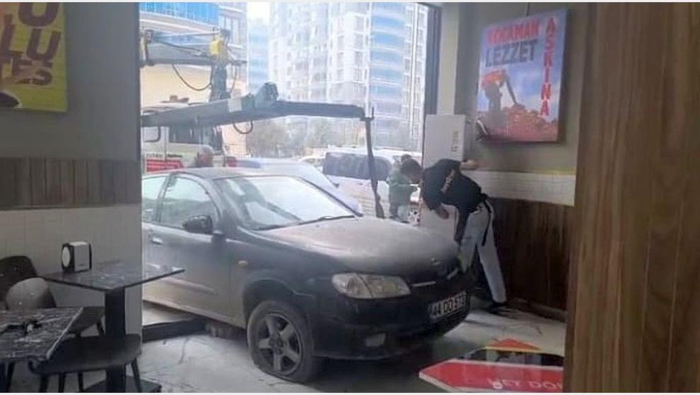 Olay, öğle saatlerinde Battalgazi ilçesi Yeşilçam Caddesi üzerinde meydana geldi. Edinilen bilgilere göre, cadde üzerindeki dönerciye gelen bir müşteri aracını park etmek istediği sırada direksiyon hakimiyetini kaybetti. Kontrolden çıkan araç iş yerine girdi. Güvenlik kameralarına yansıyan görüntülerde olay anında iş yeri içerisindeki çalışanlar ve müşterilerin büyük panik yaşadığı, cam kenarında oturan bir kişinin kasaya kadar sürüklendiği yer alırken işletme çalışanları her şeyin bir anda geliştiğini söyledi Kazada şans eseri yaralanan olmazken iş yerinde maddi hasar meydana geldi.