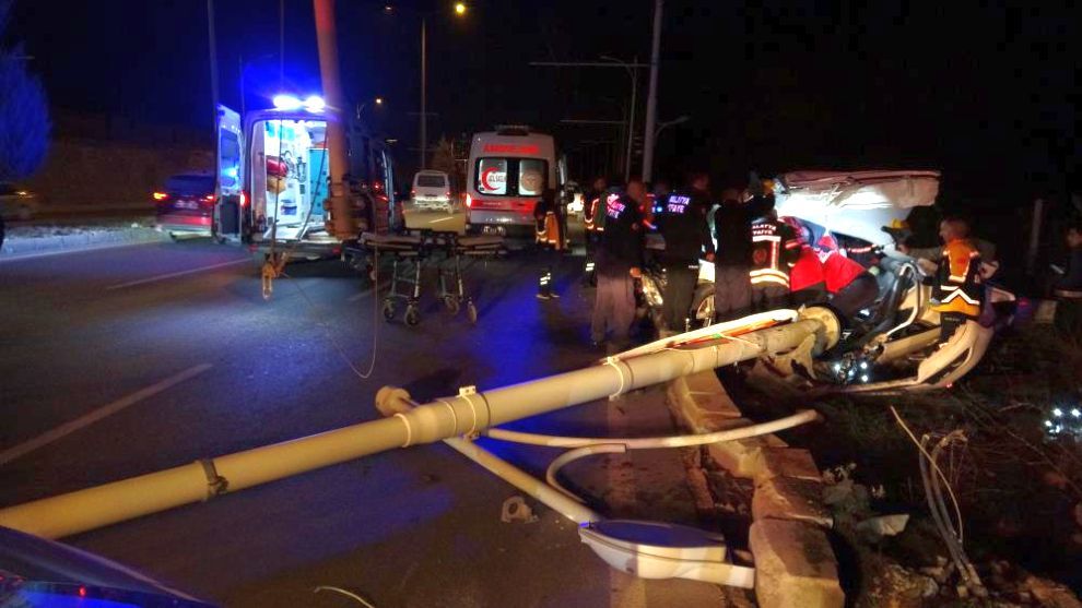 Malatya'da sürücünün kontrolünden çıkan otomobil çarptığı trambüs direğini devirdi. Feci kazada araç kağıt gibi dağılırken 1'i ağır 2 kişi yaralandı.