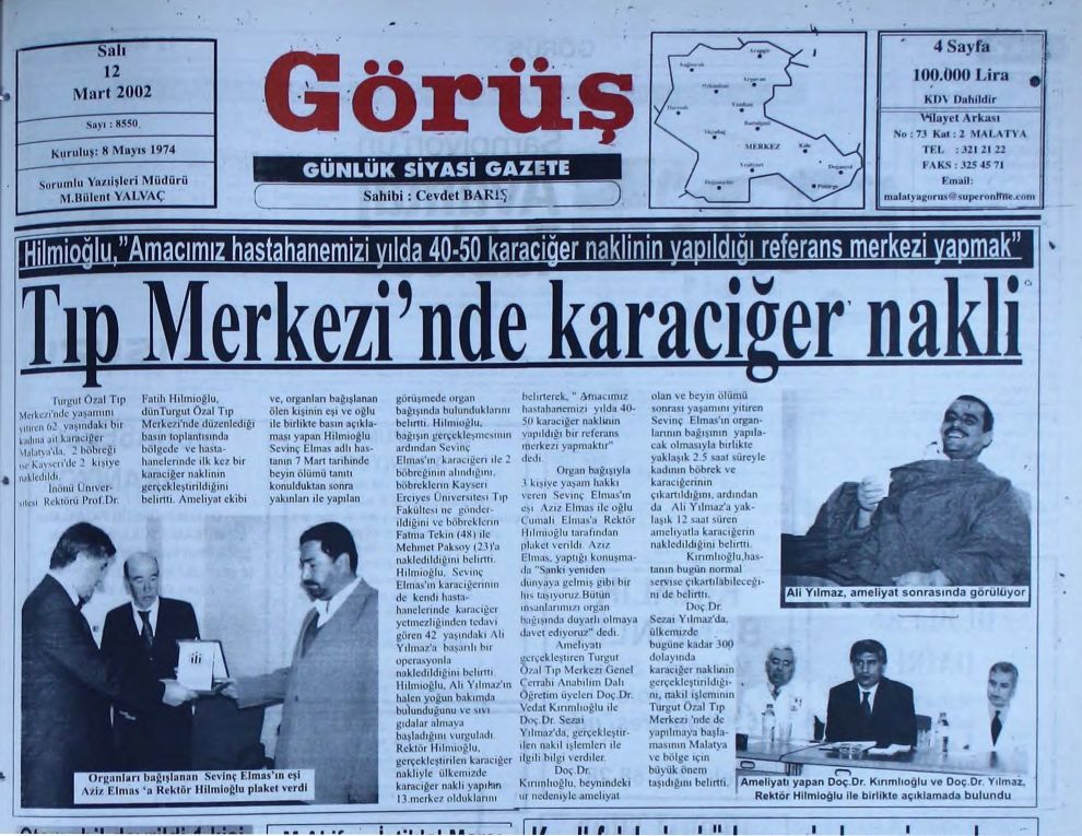 GÖRSEL: Turgut Özal Tıp Merkezi'nde yapılan ilk karaciğer nakli ile ilgili Görüş Gazetesi'nde 12 Mart 2002'de yayınlanan haber