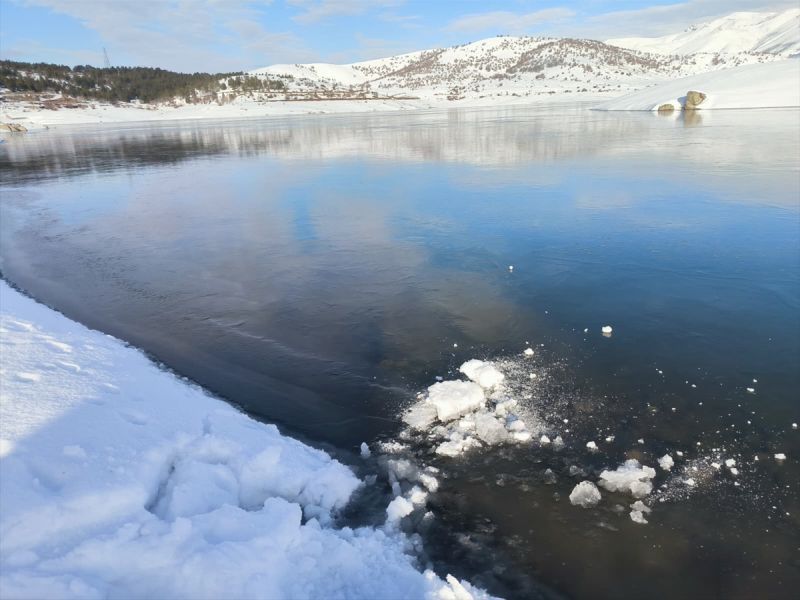 Malatya'nın Doğanşehir ilçesinde soğuk havanın etkisiyle Sürgü Barajı'nın yüzeyi buzla kaplandı.
