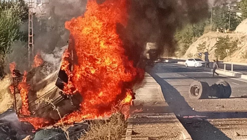Malatya'nın Darende ilçesinde freni boşalan tırın yolcu otobüsüne çarpma anı güvenlik kameralarına yansıdı. Kazada tır dereye yuvarlanıp alev alarak yanarken, otobüsteki yolcular büyük panik yaşadı.