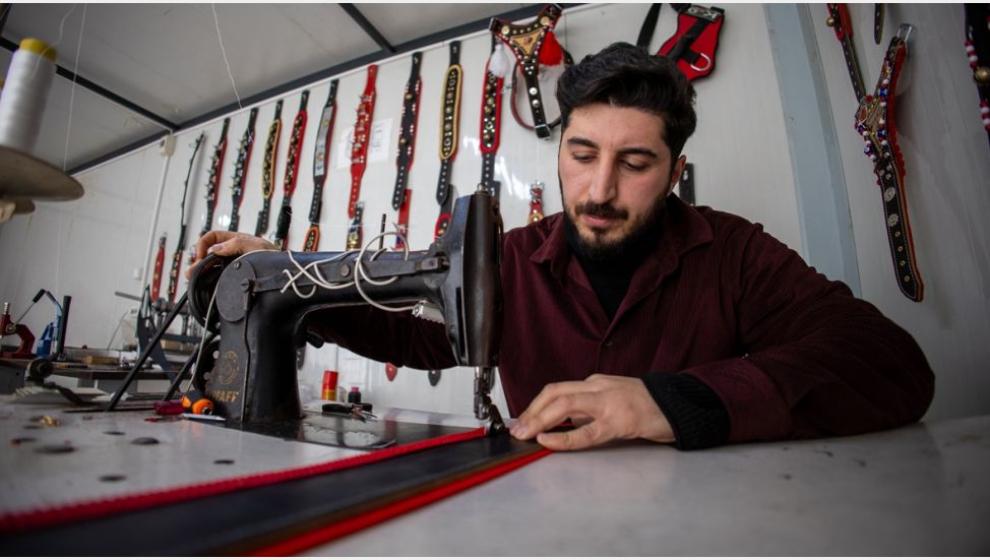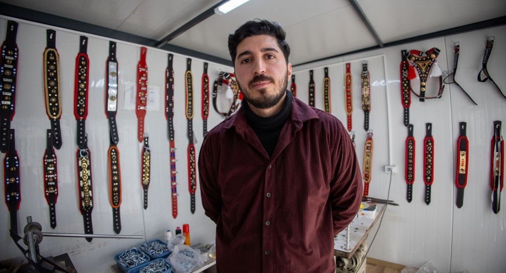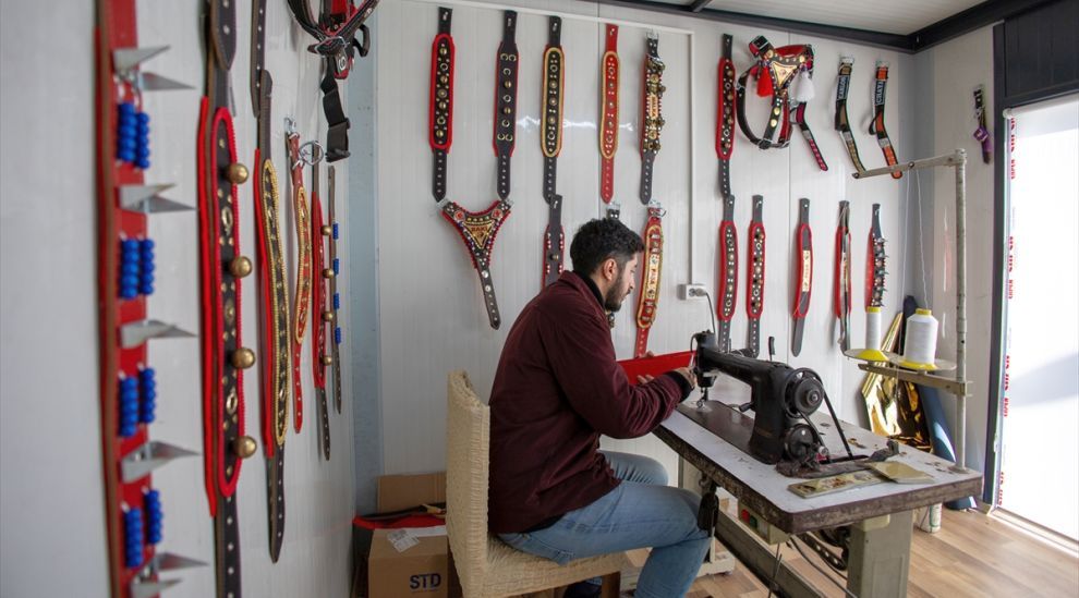 Kahramanmaraş merkezli 6 Şubat 2023'teki depremlerde iş yeri yıkılan Mustafa Sürmeli, üretimini sürdürmek için konteynerde kurduğu atölyede el emeğiyle hazırladığı köpek tasmalarını 20'den fazla ülkeye ihraç ediyor.