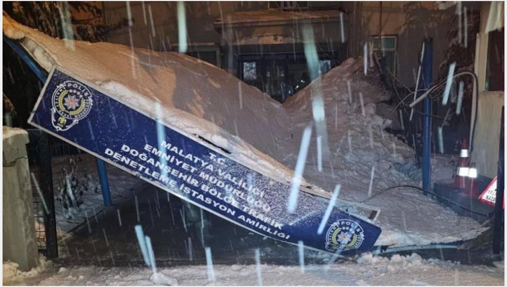 Olay, gece saatlerinde Doğanşehir ilçesine bağlı Sürgü Mahallesi’nde meydan geldi. Edinilen bilgilere göre, bölgede etkili olan yoğun kar yağışına dayanamayan Sürgü Bölge Trafik Denetleme İstasyon Amirliği’nin sundurma çatısı çöktü. Yaralananın olmadığı olayda sundurma altında bulunan 2 emniyet aracında maddi hasar oluştu.