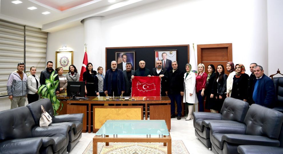 Ziyarete ilişkin değerlendirmede bulunan İhsan Akın, “Malatya Büyükşehir Belediye Başkanımız Sayın Sami Er’i makamında tarım platformu üyelerimiz ve kadın girişimcilerimizle birlikte ziyaret ettik, birçok konuda görüşmeler yaptık ve hayvan yününden yapılma Türkiye haritası bayrak halımızı hediye ettik. İlgisi ve misafirperverliği için teşekkür ederiz. Hayırlı akşamlar diliyorum.” ifadelerini kullandı.