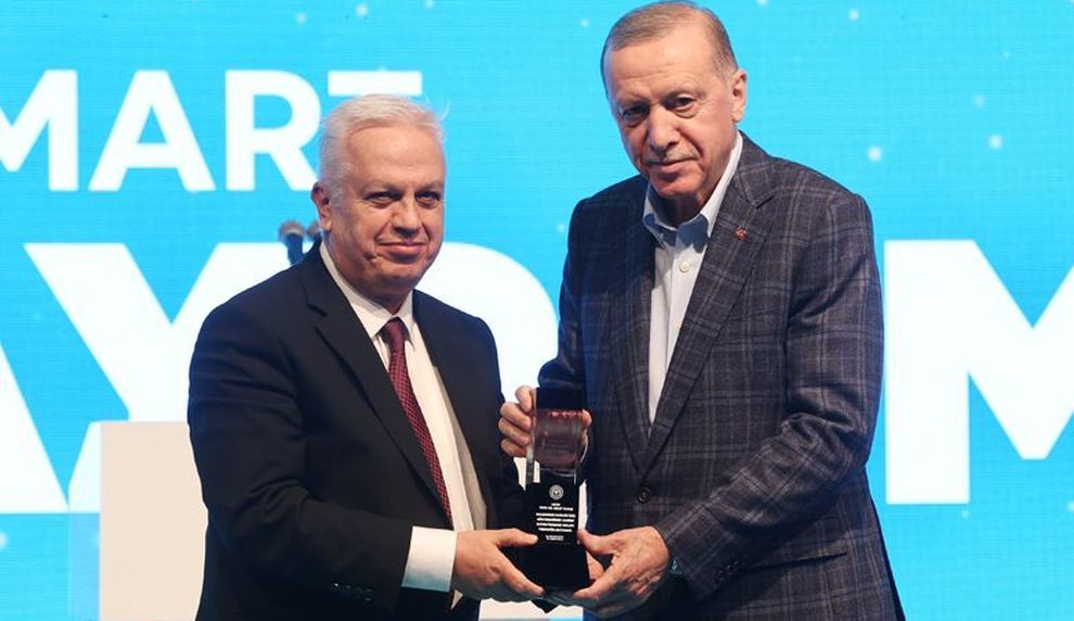 FOTOĞRAF: Prof.Dr. Sezai Yılmaz, Cumhurbaşkanı Recep Tayyip Erdoğan'ın elinden bir ödül alırken